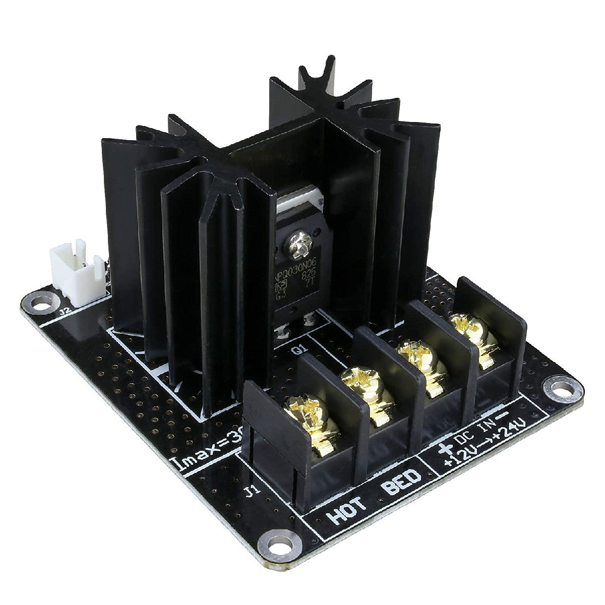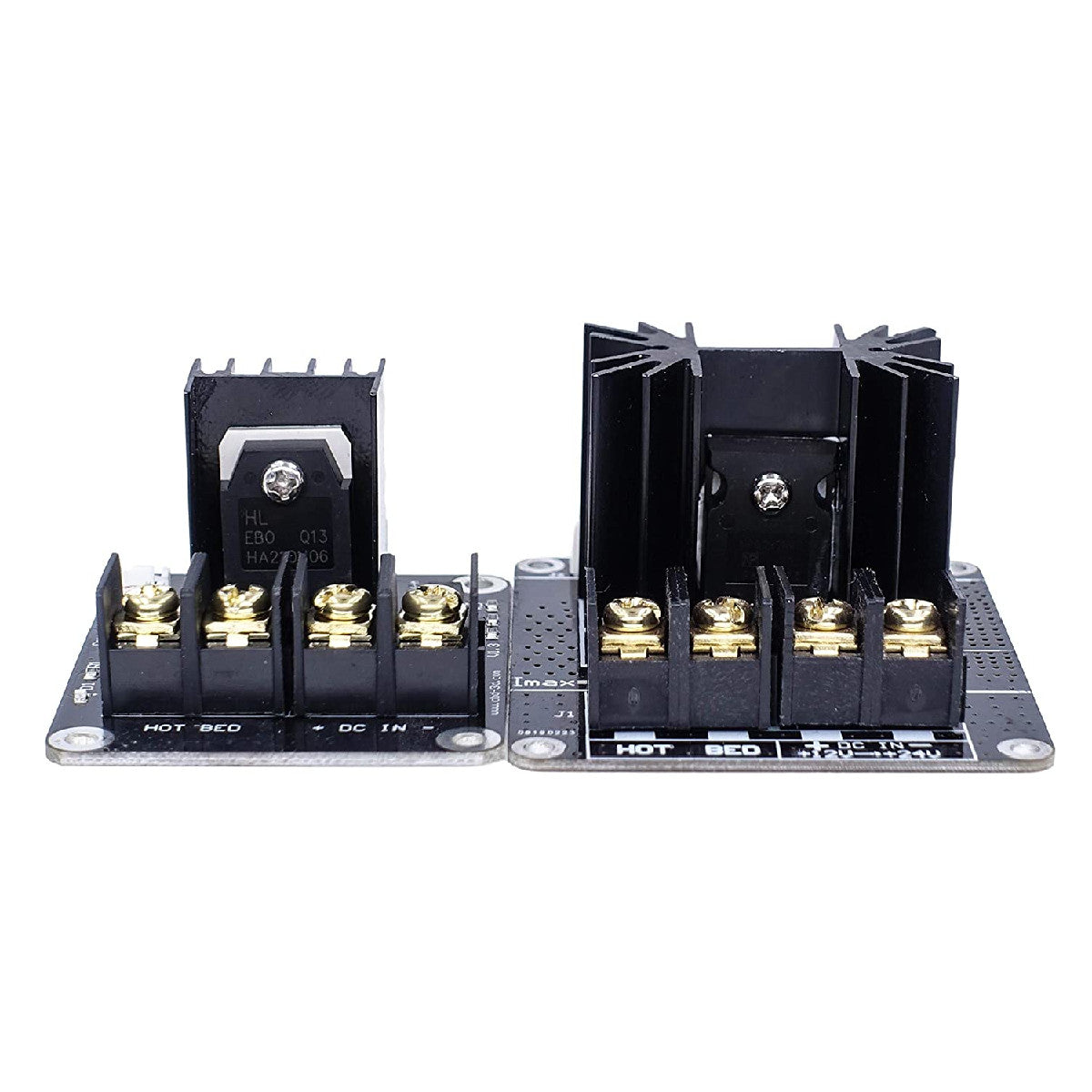 - FUNCTION - Version V2 completely revised by us, with a significantly larger heat sink, so operation without active cooling at higher currents is possible. This component switches a working circuit with a control circuit. As a result, the heating bed or the extruder can be operated without stressing the mainboard. Control circuit: mainboard + Mos, working circuit: power supply + Mos + mainboard. Instructions in the description.