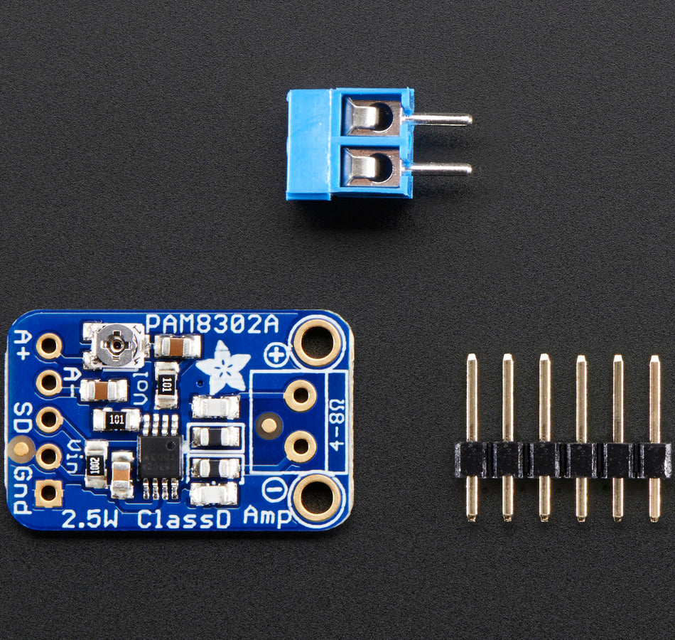 Comes with a fully assembled and tested breakout board. We also include header to plug it into a breadboard and a 3.5mm screw-terminal blocks so you can easily attach/detach your speaker. You will be ready to rock in 15 minutes! Speaker is not included, use any 4 ohm or greater impedance speaker.