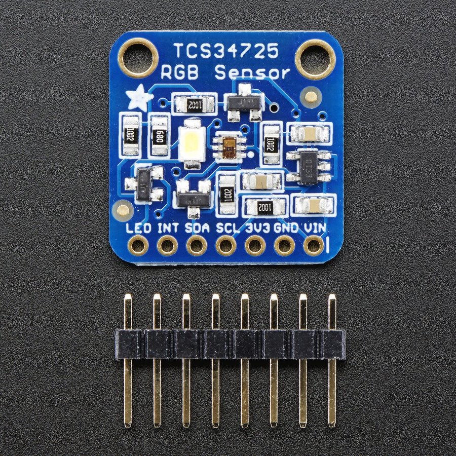 Your electronics can now see in dazzling color with this lovely color light sensor. We found the best color sensor on the market, the TCS34725, which has RGB and Clear light sensing elements. An IR blocking filter, integrated on-chip and localized to the color sensing photodiodes, minimizes the IR spectral component of the incoming light and allows color measurements to be made accurately. The filter means you'll get much truer color than most sensors, since humans don't see IR. The sensor also has an incredible 3,800,000:1 dynamic range with adjustable integration time and gain so it is suited for use behind darkened glass.