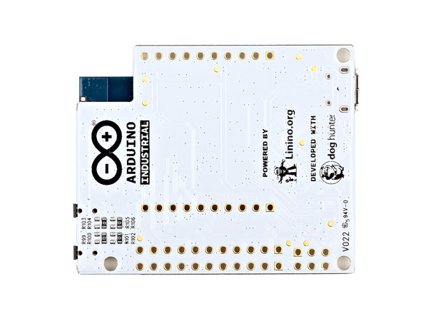 Arduino Industrial 101 is an Evaluation board for Arduino 101 LGA module. The ATmega32u4 microcontroller is integrated in the baseboard. The module supports a Linux distribution based on OpenWRT named LininoOS. The board has built-in WiFi (IEEE 802.11b/g/n operations up to 150Mbps 1x1 2.4 GHz), 3 GPIOs (of which 2 can be used as PWM Outputs), 4 Analog Inputs, 1 USB, 1 Ethernet signal on pin headers and a built-in DC/DC converter. Check out the assembling guide and simply connect your board to a computer with a micro USB cable to get started.