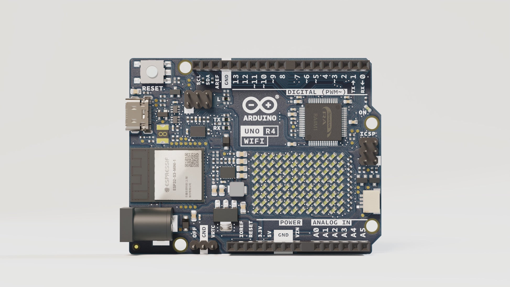 The Arduino UNO R4 WiFi combines the processing power and exciting new peripherals of the RA4M1 microcontroller from Renesas with the wireless connectivity power of the ESP32-S3 from Espressif. On top of this, the UNO R4 WiFi offers an on-board 12x8 LED matrix, Qwiic connector, VRTC, and OFF pin, covering all potential needs makers will have for their next project.