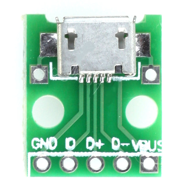 The MicroUSB Breakout Board is designed for fast prototyping of your USB applications on a breadboard. Simply solder a piece of header to the circuit board and start your USB project right on a breadboard.