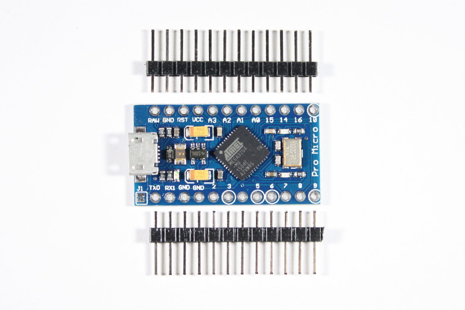 The Pro Micro module is equipped with an Atmel AVR ATmega32U4 microcontroller with an integrated USB controller. The module is compatible with Arduino Leonardo.
